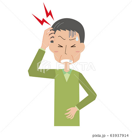 頭痛 脳卒中 脳内出血 脳血栓 男性 中年男性 お父さん 上半身のイラスト素材